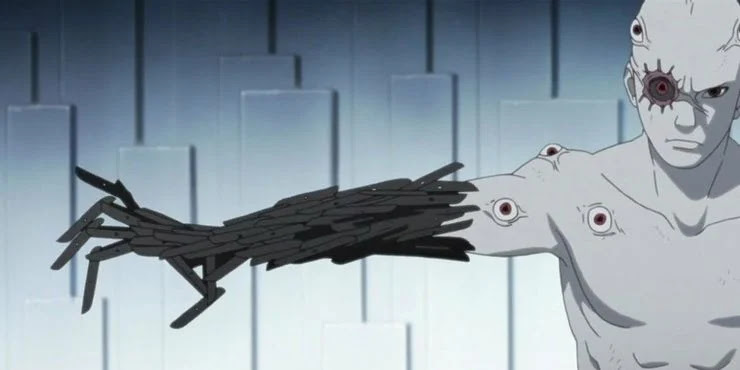 Dia entah bagaimana menempa Mangekyo Sharingan untuk dirinya sendiri dan mampu bertahan melawan Naruto dan Sasuke yang diakui lemah di Boruto . Mangekyo Shin memberinya kemampuan telekinetik yang luas dan tepat yang memungkinkannya menggunakan senjata dengan terampil dari jauh. Dia memiliki rencana untuk menghidupkan kembali Akatsuki sebelum dibunuh oleh klonnya sendiri.